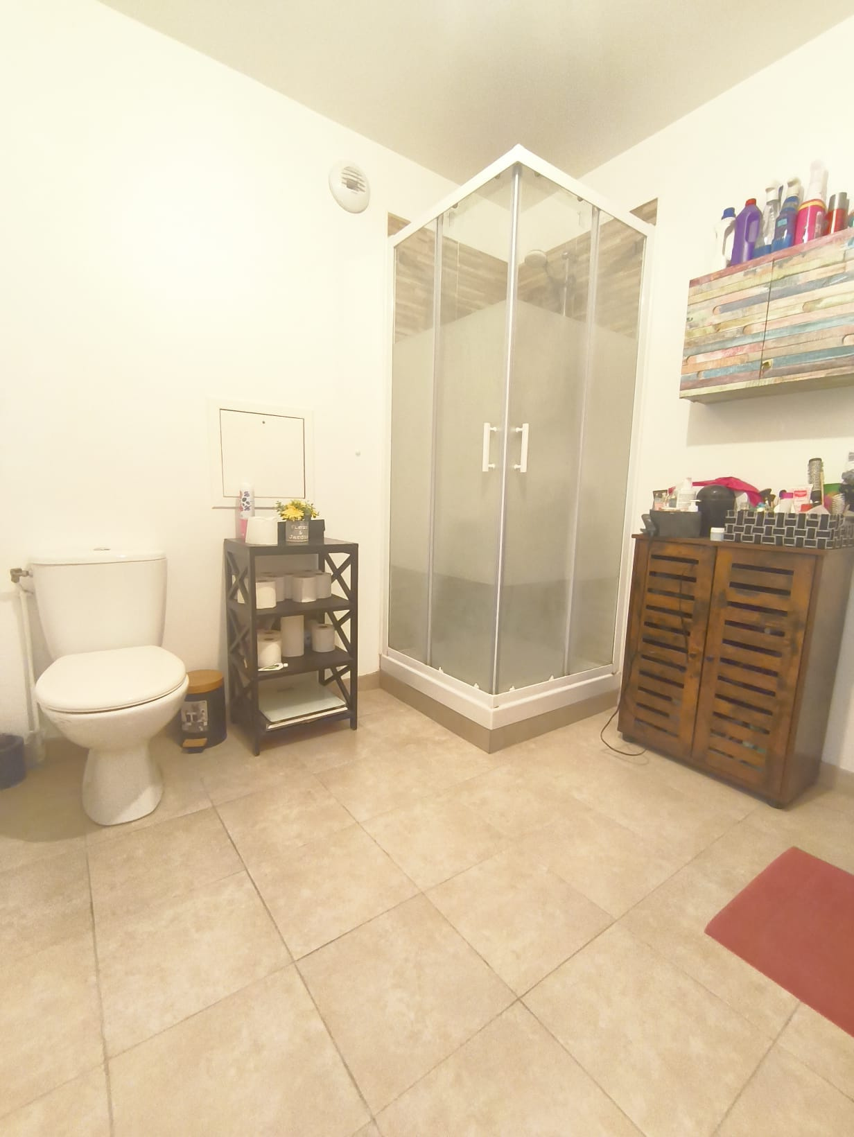 Il se compose : salon sur cuisine ouverte offrant un espace de vie agréable et fonctionnel avec accès direct sur la terrasse/jardin de 53m², une chambre, salle de bain moderne avec WC.