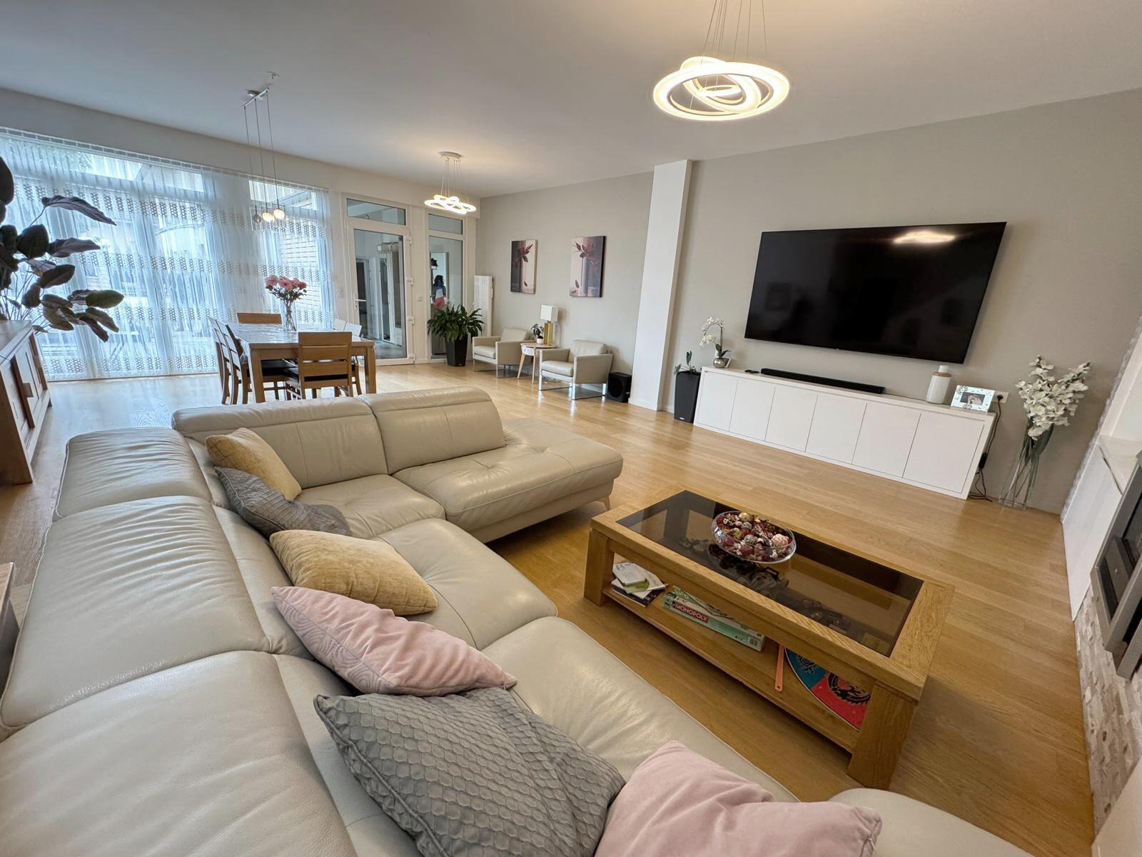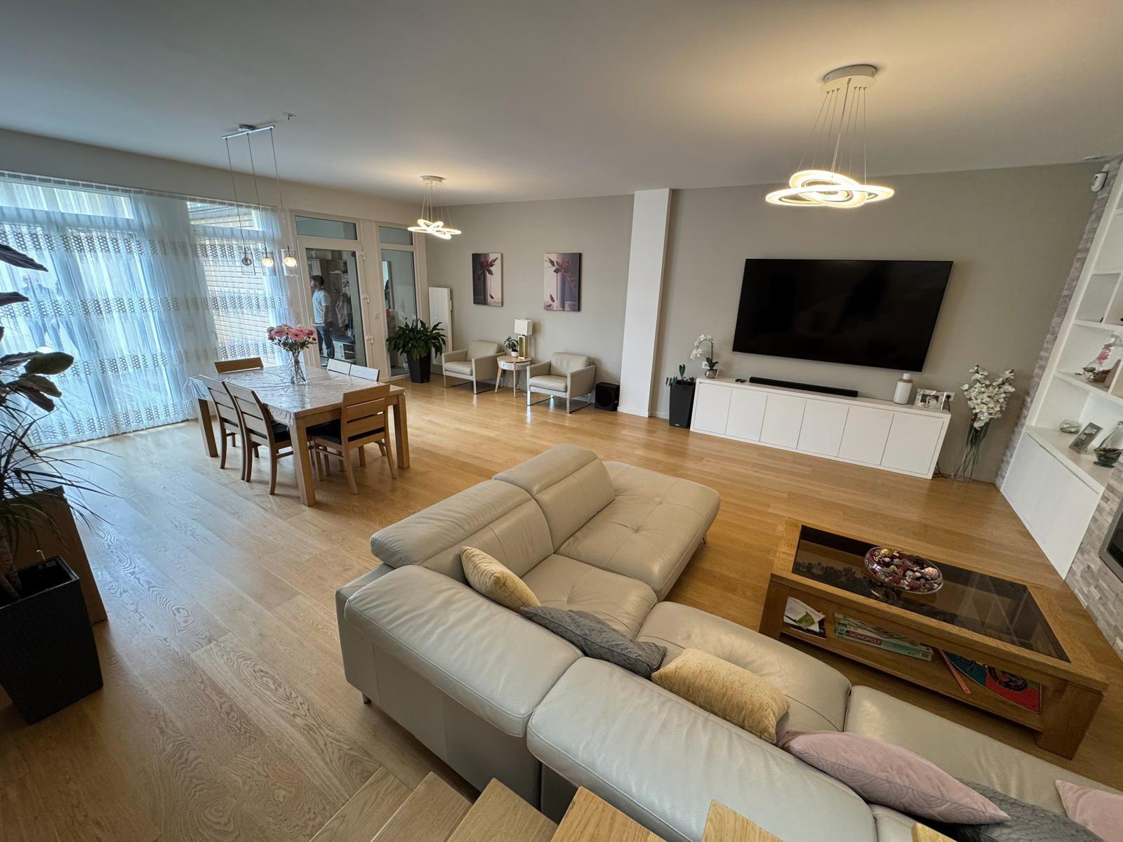 Édifiée sur un terrain d’environ 300 m², elle se compose au rez-de-chaussée de: Une vaste entrée accueillante, Un séjour double (salon/salle à manger) aux proportions exceptionnelles, sublimé par un parquet en chêne massif et largement ouvert sur l’extérieur grâce à de grandes baies vitrées (accès terrasse), Une cuisine dînatoire spacieuse parfaitement aménagée complétée par une arrière-cuisine/buanderie fonctionnelle et un toilettes avec lave-mains.
