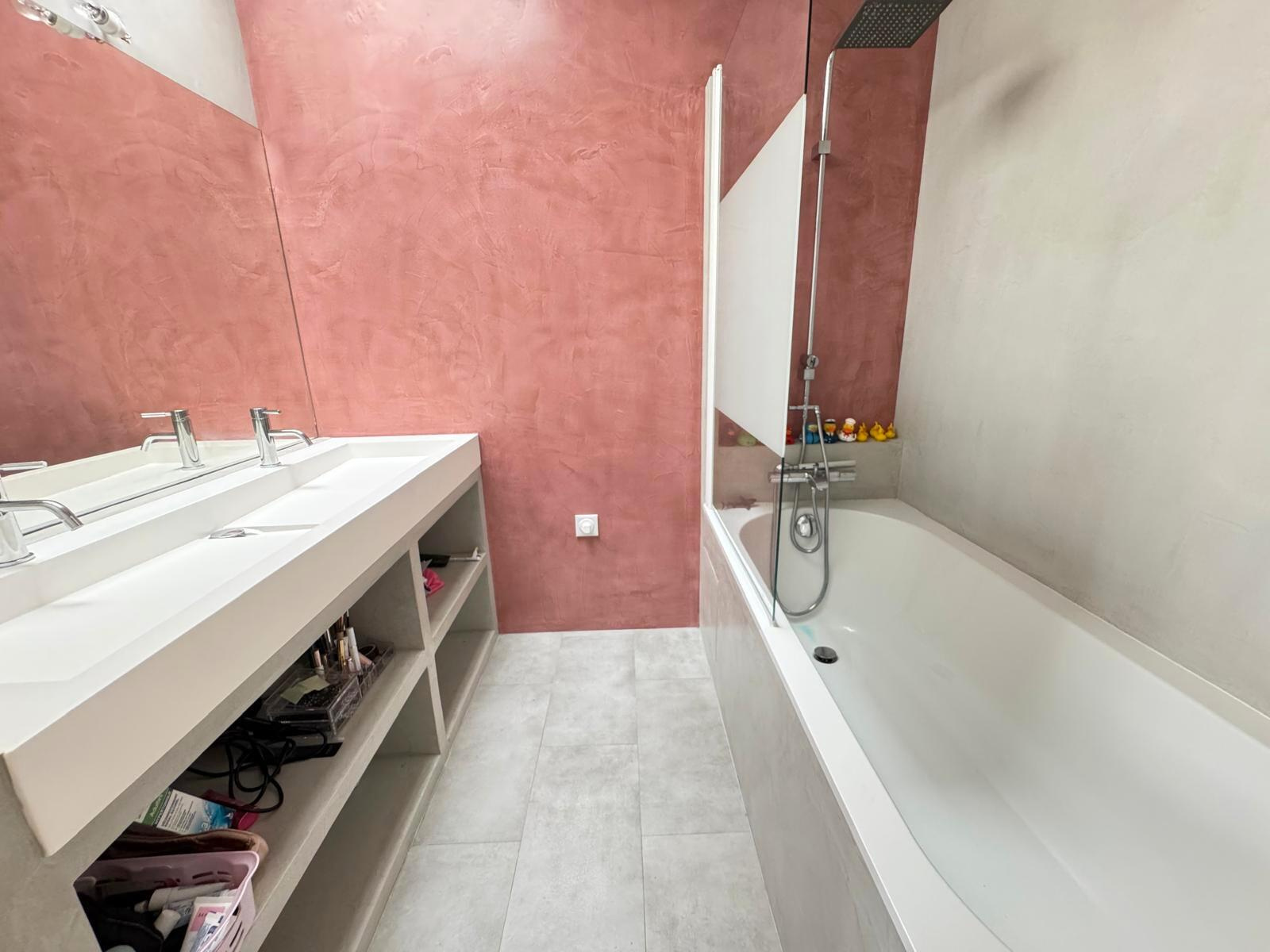 À l’étage: un grand palier dessert : Quatre chambres, dont une suite parentale avec sa salle de bains, Une salle d’eau avec WC, Un bureau lumineux avec accès balcon.